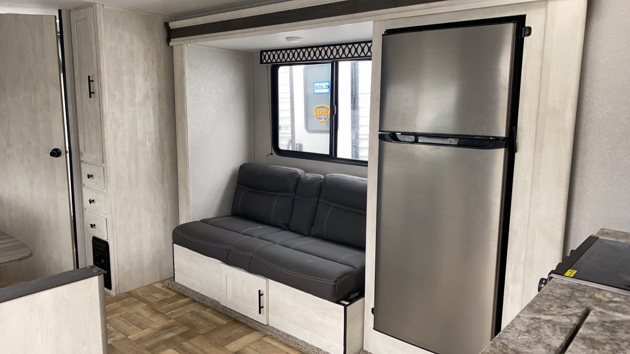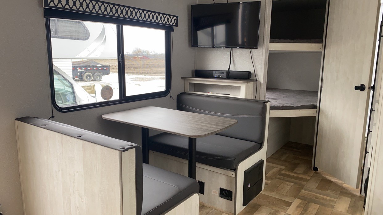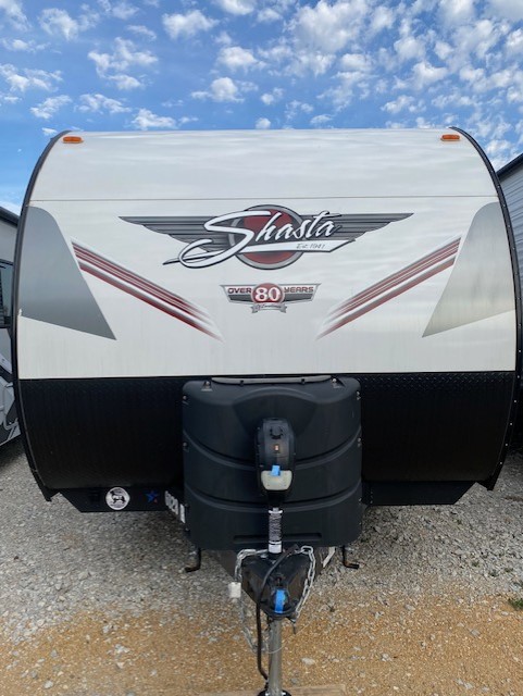 The whole family will absolutely love camping in our Shasta Oasis! There is plenty of seating and sleeping space between the rear corner bunk beds, the queen bed in the front private bedroom, and the sofa, plus you convert the booth dinette into a sleeping space! Everyone is able to freshen up in the rear corner bathroom with an oversized shower. The chef will be able to enjoy cooking with a three-burner cooktop! This model has modern woodgrain style cabinetry and residential style countertops. Equipped with a Shasta Sanitize Station so you can clean up after fishing, plus there is an outside shower to wash the mud off your hiking boots! With plenty of exterior between the front exterior pass-through storage area and the rear outside storage area. You are sure to find that this trailer will fit your needs packed with convenience and value! Constructed with a steel I-beam frame, Diffelx II TPO roof material plus the aerodynamic radius front profile makes it easier to tow.
