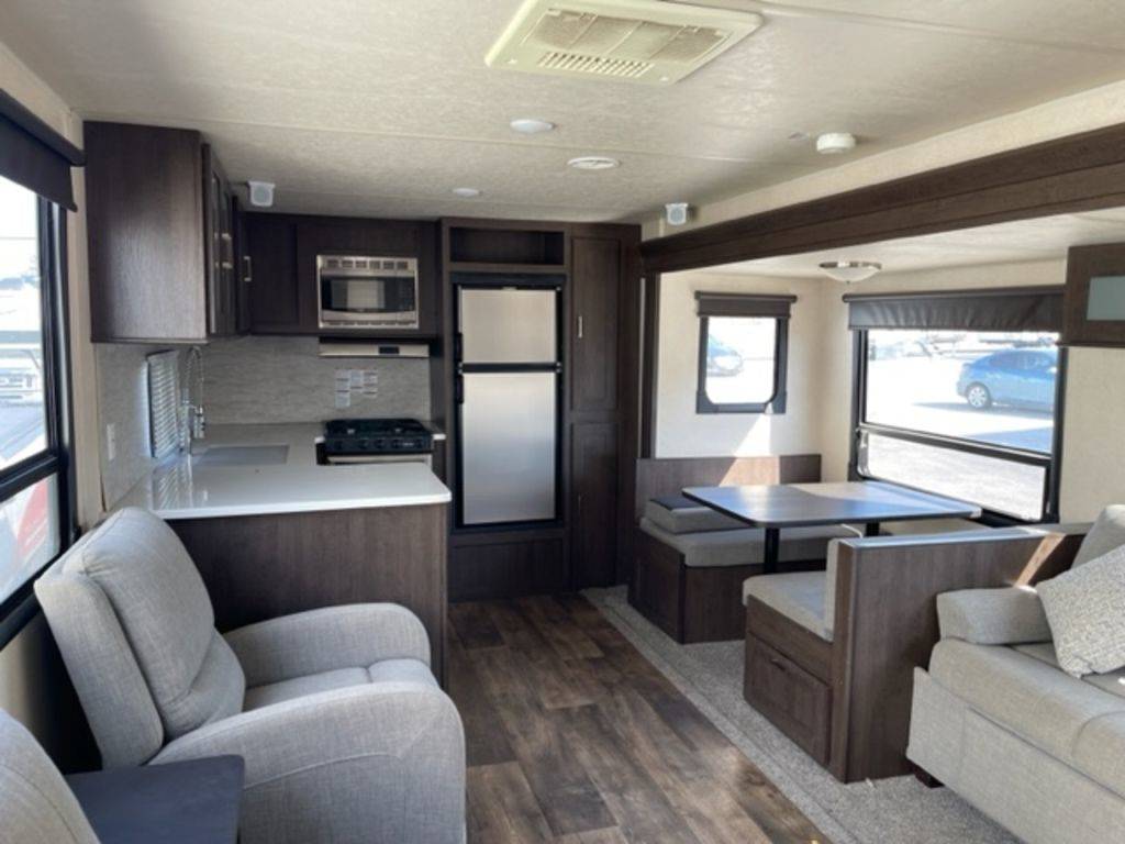 Overall, the Wildwood Travel Trailer 28DBUD is a spacious and versatile travel trailer that offers a variety of sleeping and entertainment options for families and groups of up to eight people.