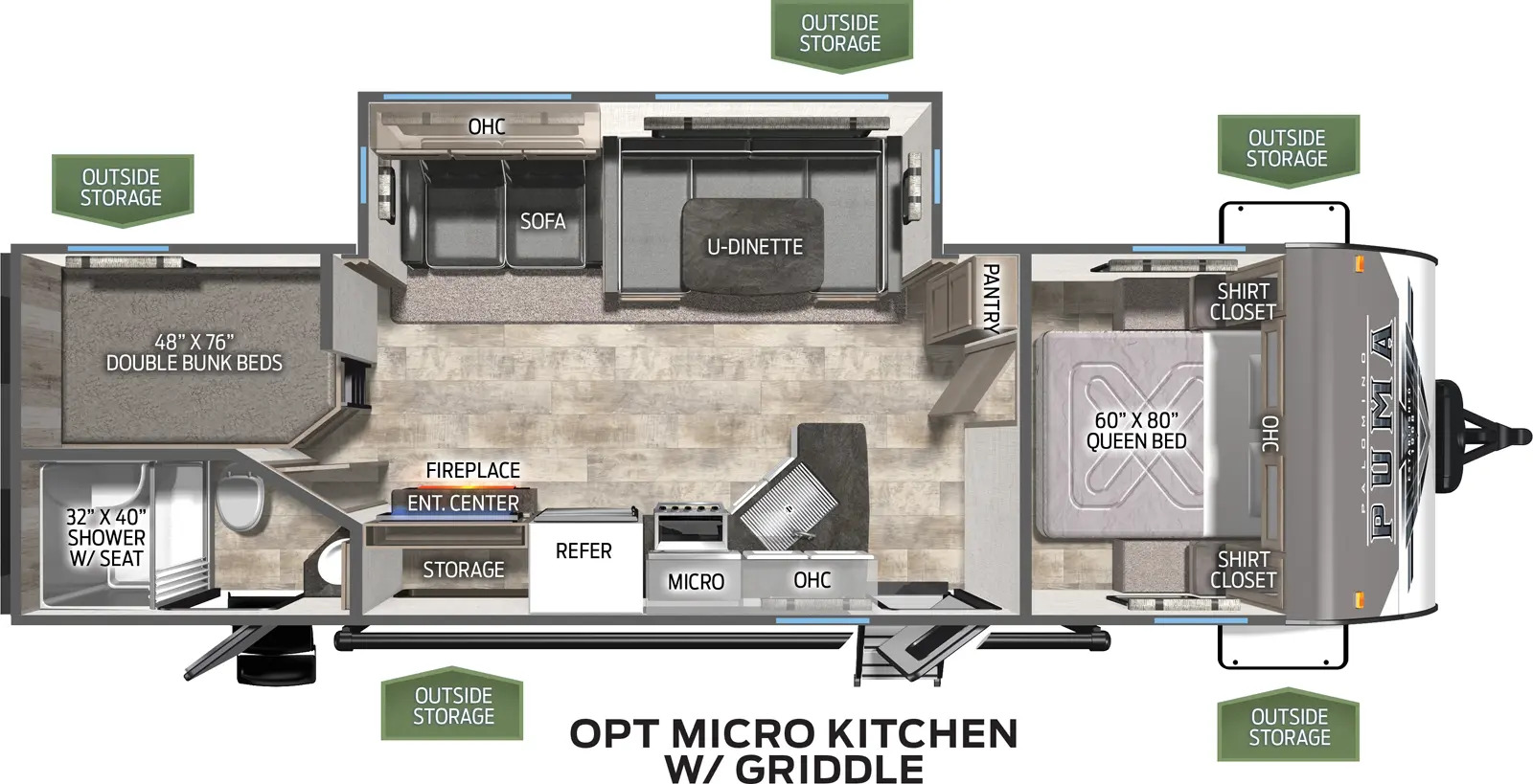 Travel Trailer - 1 Slide Out - Palomino Puma 28DBFQ Bunks
