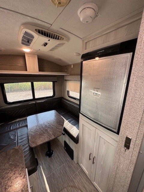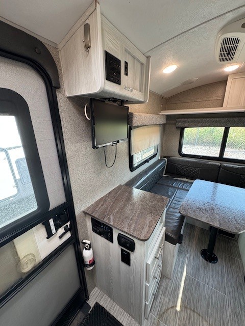 U-Shaped Dinette: It features a U-shaped dinette that converts into a sleeping space for two.