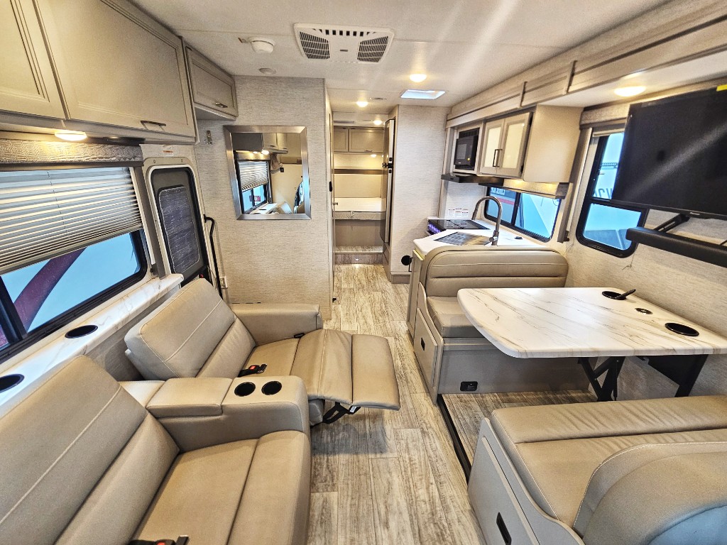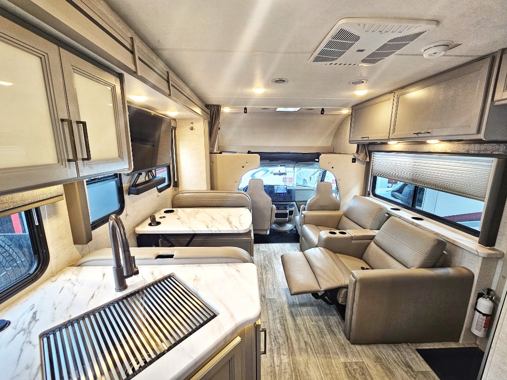 This medium sized Class C drives like a truck yet offers plenty of living space with the large living room/kitchen slide out.