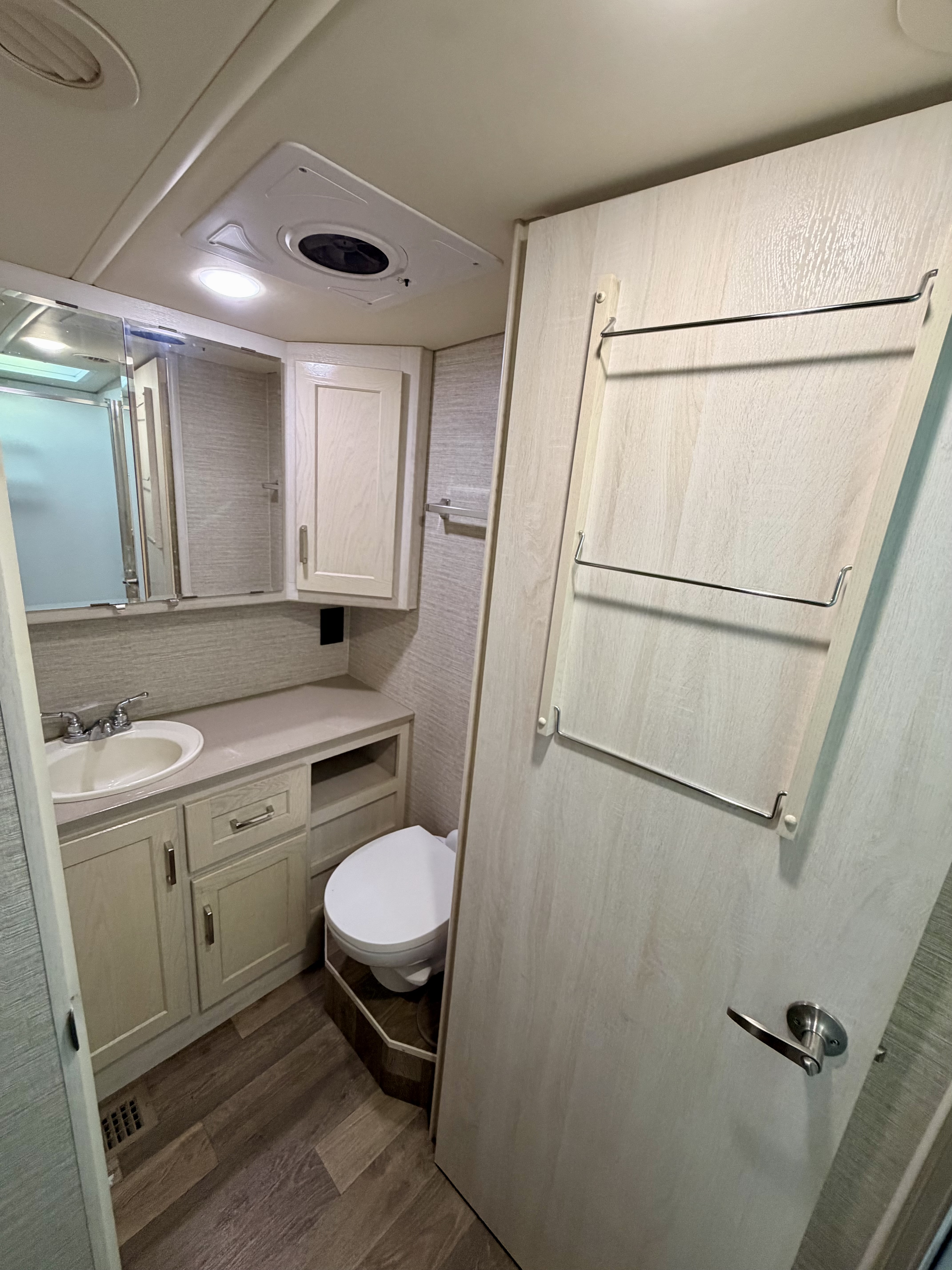 This motorhome comfortably sleeps up to 6 guests, making it an excellent option for families or couples traveling together. The well-designed floor plan creates an open, inviting living space while still offering privacy and convenience.